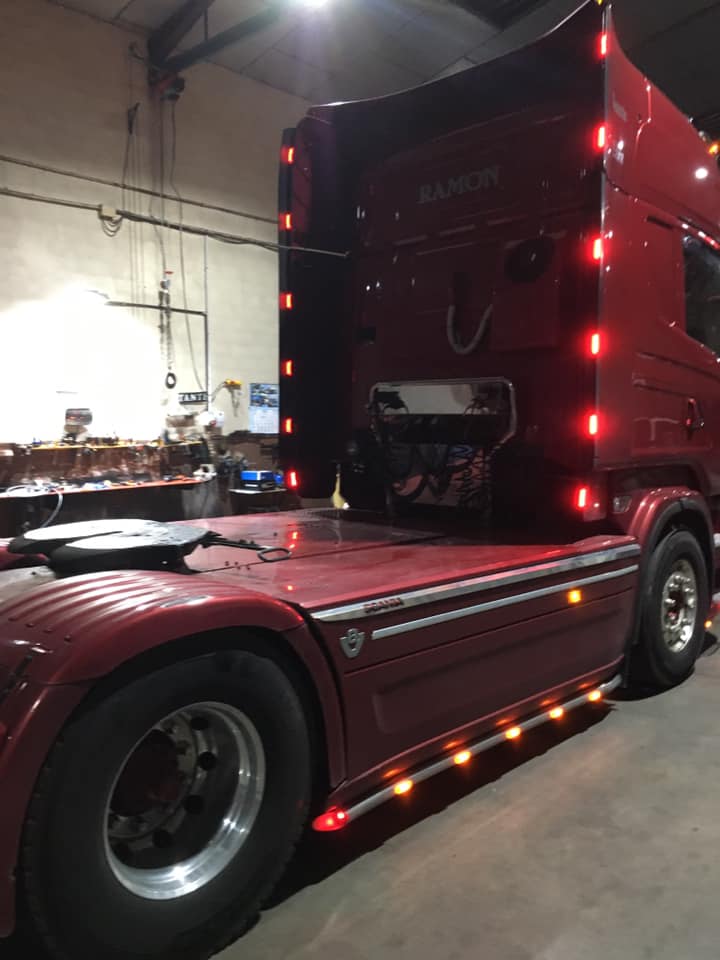 No en vano los fundadores de la empresa, Tante y Raúl son dos transportistas que conocen bien la realidad y los anelos propios de quien se pone al volante de su camión. Así a través de contactos y su propia experiencia decorando los camiones con los que trabajan a diario en la carretera han llegado a obtener un interesante catálogo de proveedores de todo tipo de accesorios. Tante es un experto en el transporte internacional de peces vivos, bien conocido por parte de los encamion@utas. A su vez Raúl forma parte de una larga estirpe de transportistas leoneses. La empresa familiar trabaja mayoritariamente en tareas relacionadas con la industria forestal y la biomasa. En ambos casos el trabajo duro en la carretera no impide que los vehículos luzcan de modo espectacular. Se trata de transportistas que gustan de lucir el orgullo por su oficio y eso se traduce en mostrar unos camiones de los cuales sentirse orgullosos.