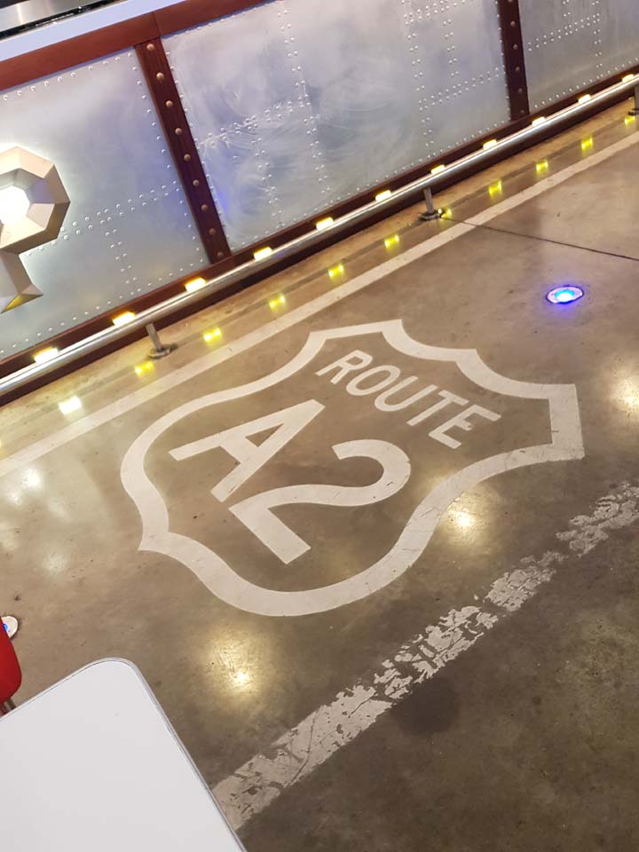 A la vez que paramos para realizar el descanso propio del tacógrafo en nuestro viaje, podemos disfrutar del carácter americano más propio de la Ruta 66. Sin embargo, no hay lugar a dudas, estamos recorriendo la A2 a medio camino entre Barcelona y Zaragoza.