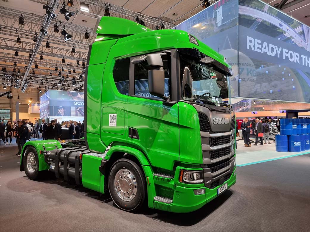 La otra marca del Grupo Traton junto a MAN Truck & Bus es la sueca Scania. Tras recorrer su exposición nos quedó claro que los suecos buscan la baza de la eficiencia al máximo, se haya elegido el combustible que se haya elegido para el camión Scania.