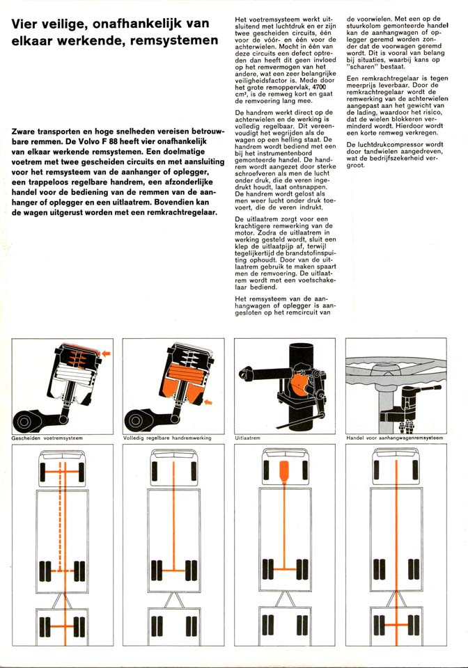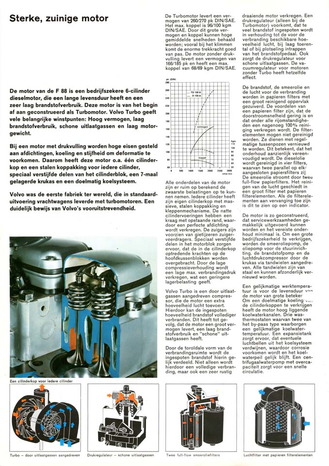 Pero el resultado lo notaban y apreciaban positivamente los transportistas en las rutas de todo el continente europeo. Esto se hacía patente en el resto de gamas de camiones medios y ligeros Volvo. Lo que resultaba apreciable era que hasta inicios de los 60 Volvo había sido extremadamente conservadora en el diseño de sus camiones pesados. El Viking, gama anterior al F88 pero con su mismo motor de 9,6 litros, era un camión con capot, es decir cabina de morro, con un aspecto ciertamente poco refinado. Ahora estaba claro que los tiempos estaban cambiando y cuando en las rutas europeas se veía un Volvo F88 o F89 todos se giraban para mirarlo. Era el camión del momento. Destacaba por un cabina realmente llamativa, cuyo puesto de conducción estaba a mayor altura sobre el asfalto que el de la práctica totalidad de oponentes.