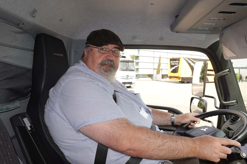 Como colofón a nuestra jornada de camioneros eléctricos nos pusimos al volante de un pequeño eCanter de 7,49 toneladas de MMA. Este camión se trata de un viejo conocido, pues era una de las unidades que se estrenaron durante la presentación del modelo en Berlín a la que asistimos en 2017. El camión tras 22.000 kilómetros de servicio puramente urbano sigue conservando todas sus prestaciones. Se sigue manejando igual de ágilmente, su Demodriver nos lo define como un Scooter, pero lo que es más importante sus baterías conservan los 150 kilómetros de autonomía máxima. Lo que es igualmente importante puede recuperar todavía el 80 por ciento de su energía en una parada de media hora.
