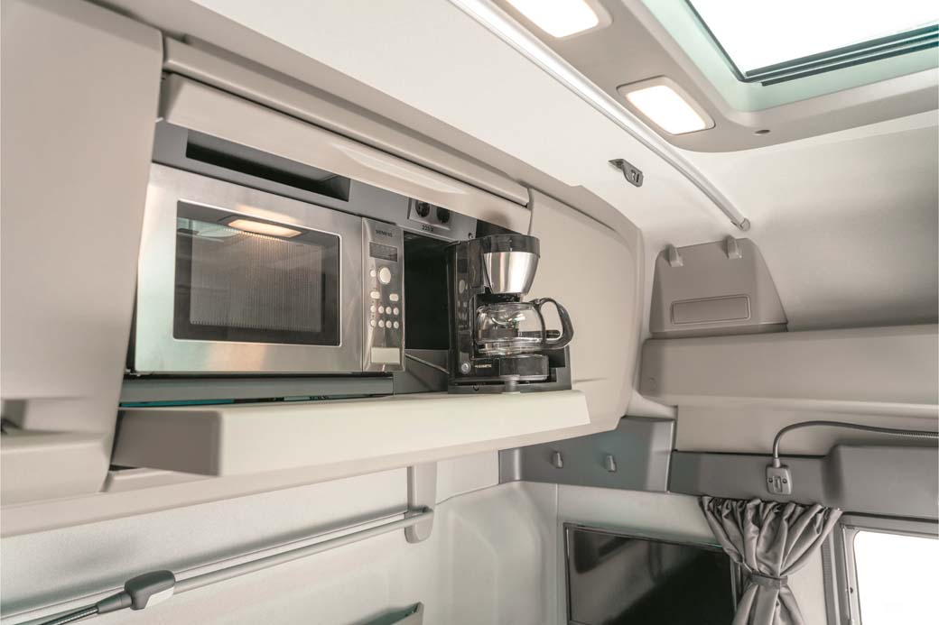 Este MAN TGX se denomina Individual Lion S y tiene en su aspecto exclusivo y máximo nivel de equipamiento su seña de identidad. Si optamos por equipar una única cama en la cabina XXL podemos disponer de un completo mueble en el panel trasero. Se puede situar una pantalla de televisión de gran formato junto a un armario central que comprende el horno y la cafetera. Este exclusivo camión que nos propone MAN Truck & Bus está enfocado para ofrecer a los transportistas más exigentes las mejores condiciones de vida durante los largos desplazamientos.
