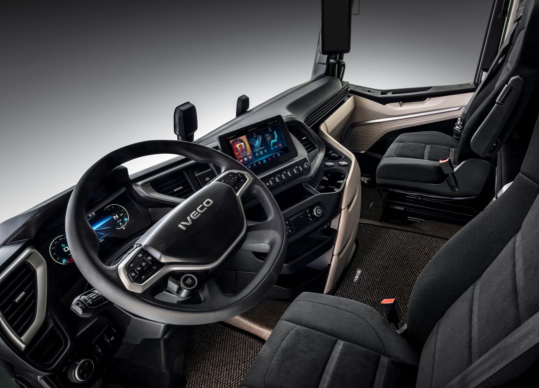 - El puesto de conducción de las cabinas S WAY, X WAY y T WAY ha sido renovado. Destacan el nuevo mando de la caja de cambios y retarder en la caña de dirección y las pantallas digitales del cuadro y zona central.