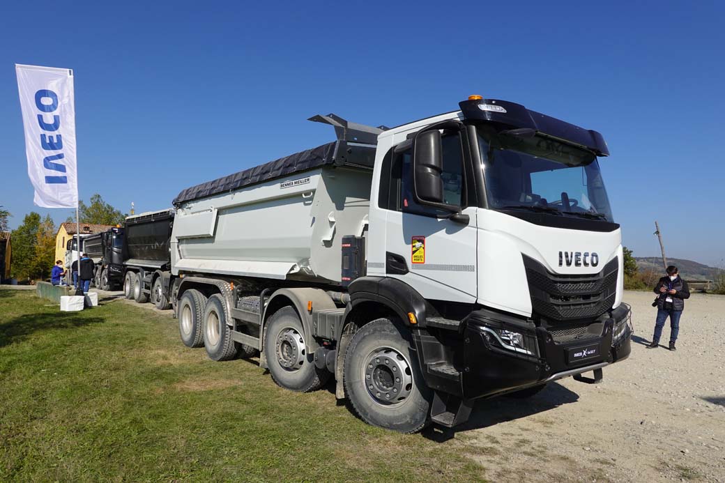 Dos ejemplos de uso idóneo para un Iveco X-Way. Por ejemplo una tractora 4X2 enganchada a un semi bañera para obras. Esta tractora quizás sólo deba recorrer unos metros finales en su ruta sobre barro, al descargar en un solar en construcción. Quizás le sea útil equipar en el eje delantero la tracción hidráulica auxiliar Hi-Traction. Un sistema que mediante toma de fuerza hidráulica ofrece tracción al eje delantero por debajo de 45 km/h si detecta que el eje posterior, de tracción permanente mediante diferencial, derrapa. Esto actúa sólo cuando el conductor acciona el mecanismo mediante una tecla al abandonar el asfalto. Nos aseguramos así que un charco de barro no nos detanga en el tramo final de la ruta. Un chasis homigonera que opere principalmente en obras urbanas sería otro uso idóneo para los X-Way de IVECO. IVECO T-Way X-Way construcción