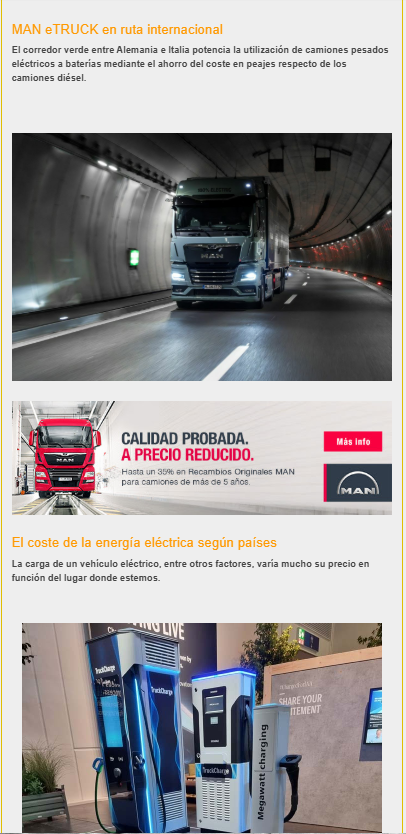 La ruta del Brennero brilla como protagonista de la última revolución en la logística nocturna con camiones eléctricos eTruck de MAN. Este paso alpino, clave en la conexión entre Alemania e Italia, se convierte en ejemplo europeo de sostenibilidad y eficiencia gracias a un ambicioso proyecto piloto liderado por MAN y Dettendorfer. El escenario es prometedor: la región beneficia el tránsito nocturno de vehículos libres de emisiones y marca un punto de inflexión para el sector del transporte. ¡La newsletter de los Encamionaut@s! Nº 768