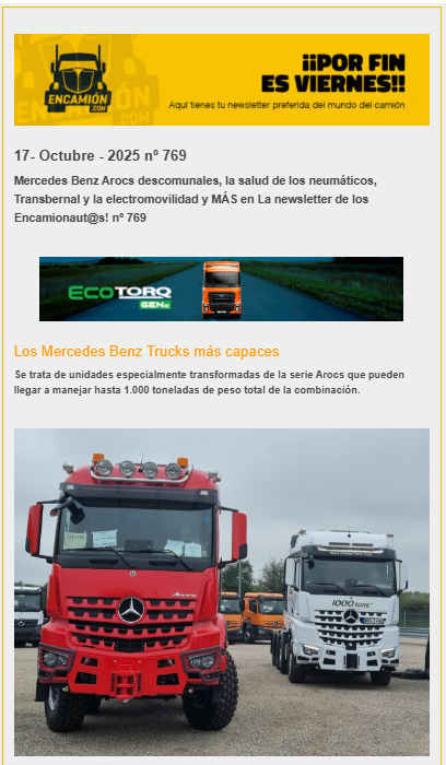 ¡Mercedes Benz Arocs descomunales, la salud de los neumáticos, Transbernal y la electromovilidad y MÁS en La newsletter de los Encamionaut@s! nº 769