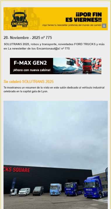 SOLUTRANS 2025, robos y transporte, novedades FORD TRUCKS y más en La newsletter de los Encamionaut@s! nº 775 . Todas las novedades del mundo del camion en tu newsletter preferida …….
