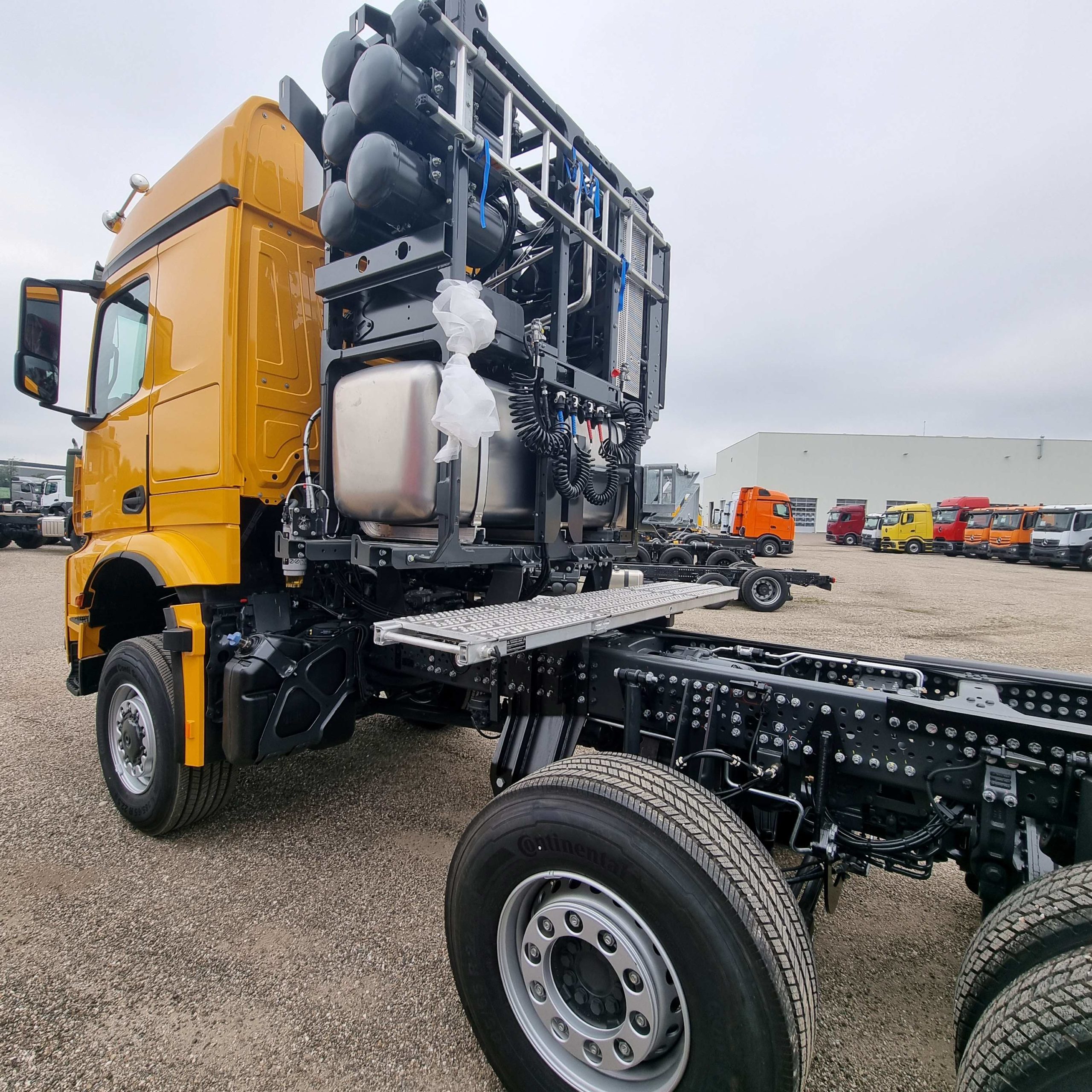 - La mayor parte de transformaciones responden a modelos especiales de las series Actros y Arocs. La gran mayoría son chasis rígidos para montar sistemas de elevación o de bombeo de hormigón de cuatro o más ejes. camiones MERCEDES BENZ TRUCKS más especiales y de mayor capacidad