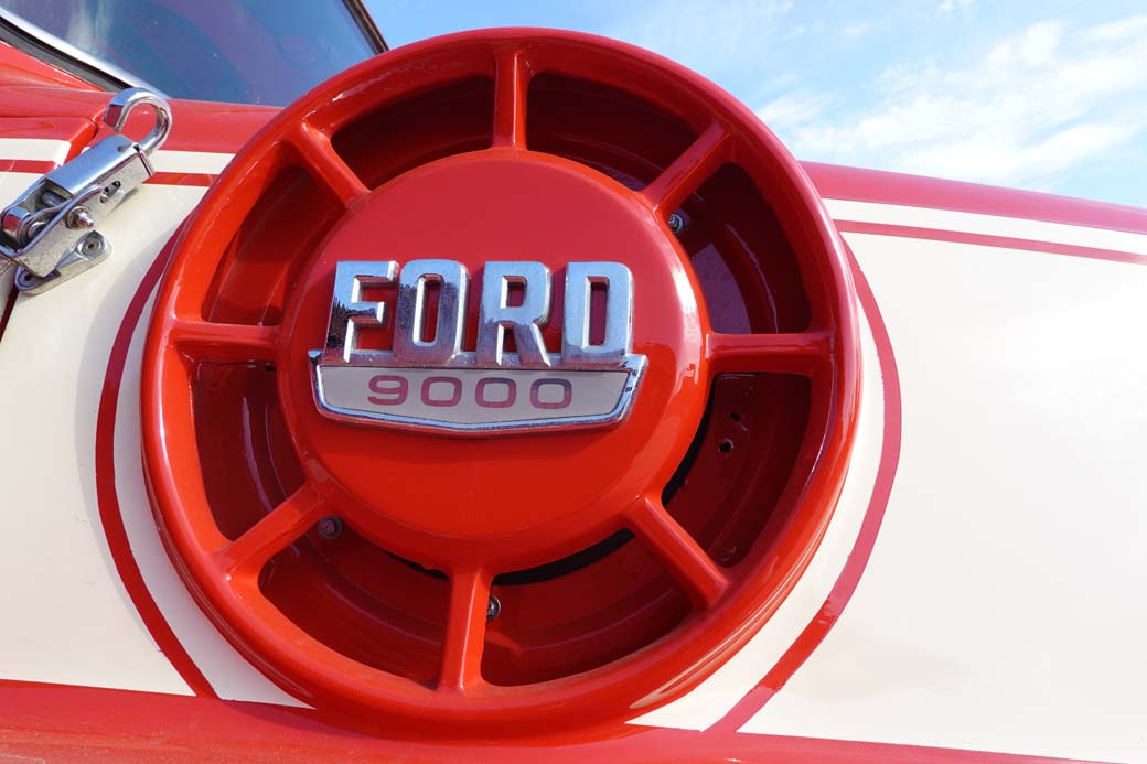 El conjunto del Big Red de Ford era un doble trailer de 33 metros de longitud y 9 ejes en total.