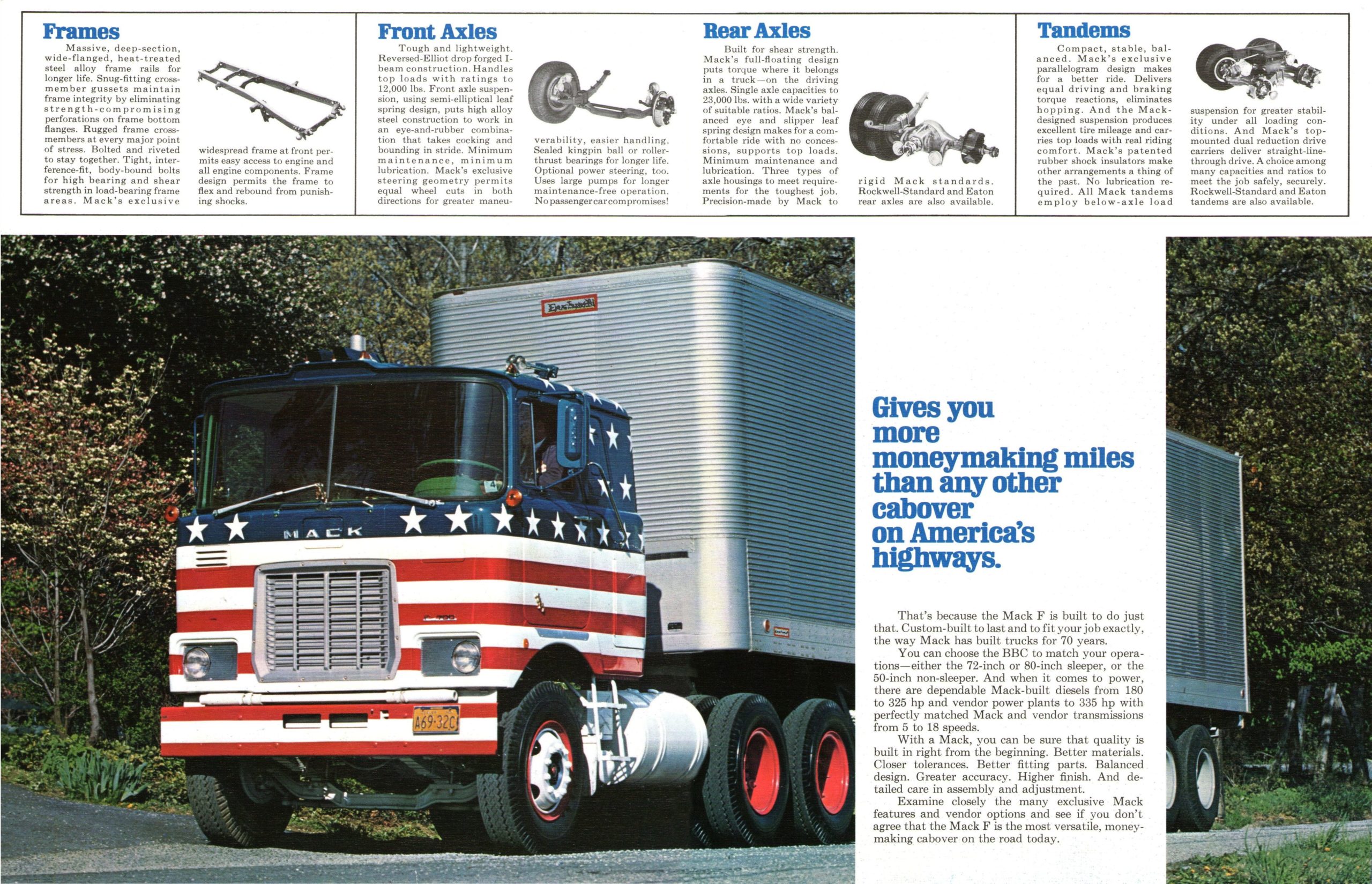 Mack disponía de la oferta ideal para las grandes empresas con rutas de paquetería a lo largo de la Costa del Pacífico. Por un lado cabinas como las de la novedosa serie F y FL. Ésta última se diseñó con amplios sleeper pensando en dichas rutas del Noroeste Americano. Por el otro sus poderosos motores como los diésel Thermodyne turbolimentados o el impresionante Mack V8 con el que a principios de los años 70 del siglo XX la marca ofrecía hasta 380 CV.
