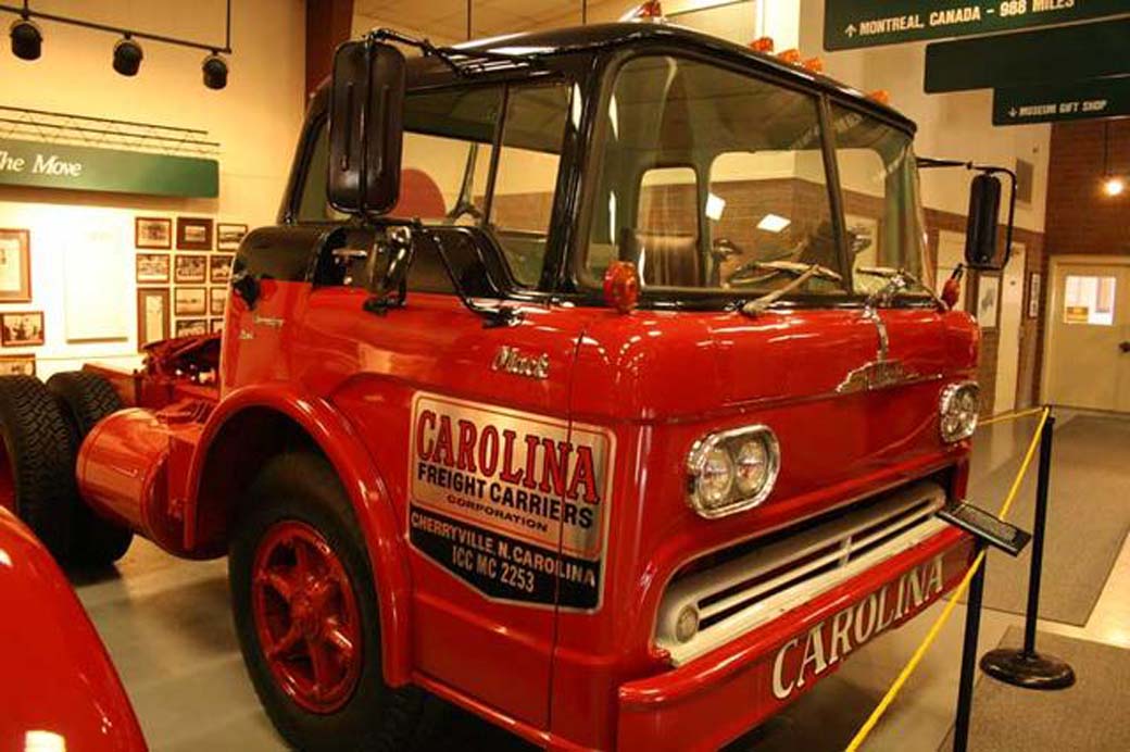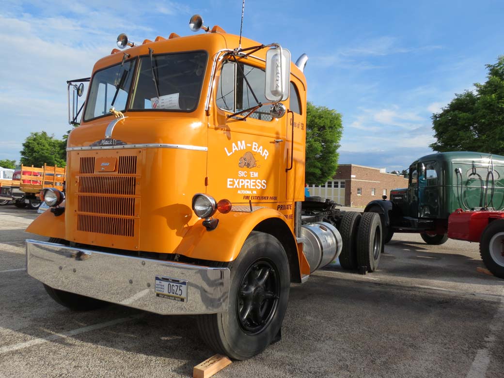 Actualmente la práctica totalidad de camiones pesados que se utilizan en Norte América responden a lo que allí denominan Conventional Truck. Es decir una cabina de morro, donde delante del habitáculo de conducción se dispone de un gran capot para alojar el motor. Eso facilita la accesibilidad mecánica a la vez que favorece el reparto de pesos, pues incrementa la longitud del chasis de las tractoras y camiones. Mack chato el camión americano .