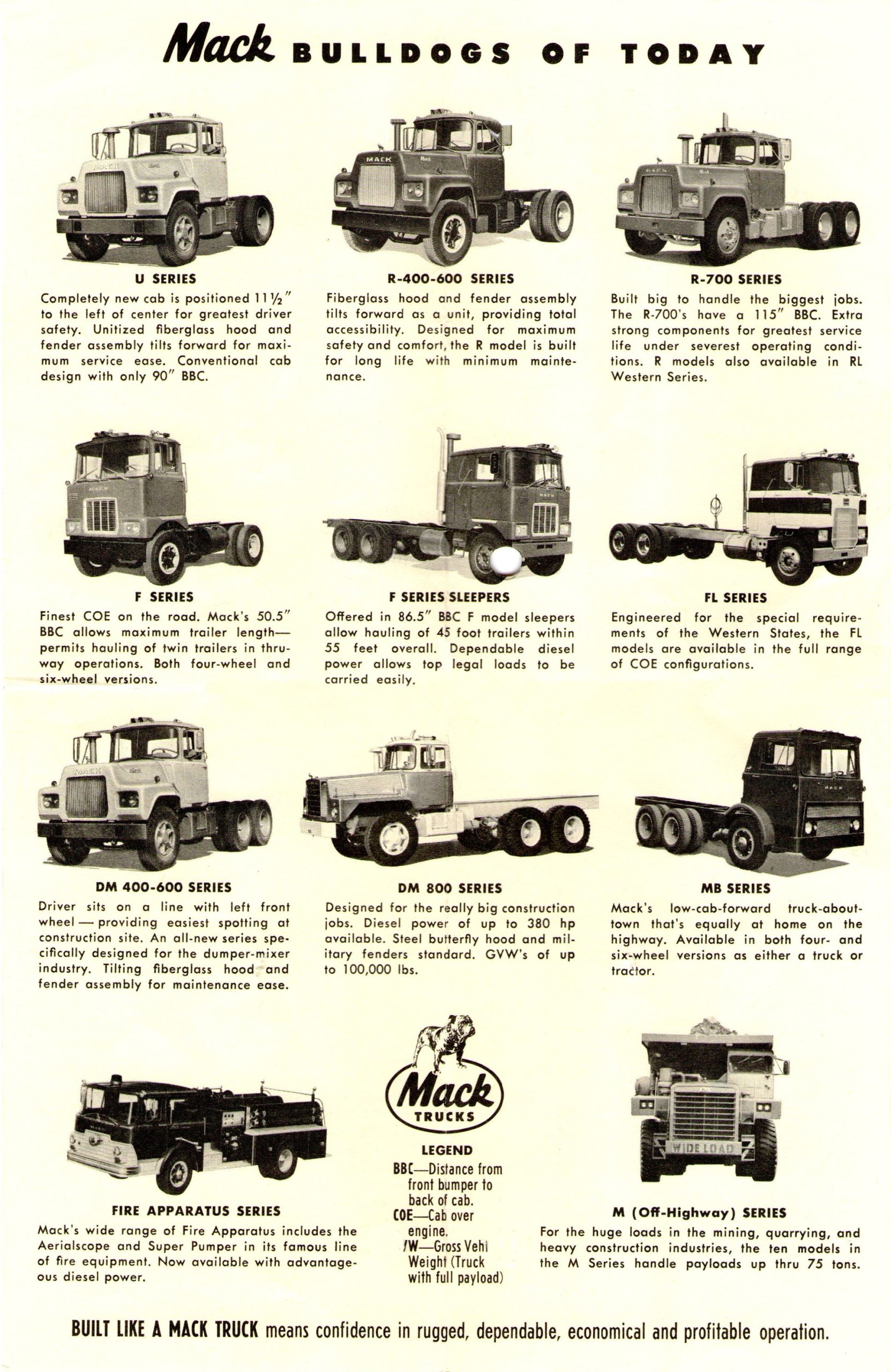 Mack disponía de la oferta ideal para las grandes empresas con rutas de paquetería a lo largo de la Costa del Pacífico. Por un lado cabinas como las de la novedosa serie F y FL. Ésta última se diseñó con amplios sleeper pensando en dichas rutas del Noroeste Americano. Por el otro sus poderosos motores como los diésel Thermodyne turbolimentados o el impresionante Mack V8 con el que a principios de los años 70 del siglo XX la marca ofrecía hasta 380 CV.