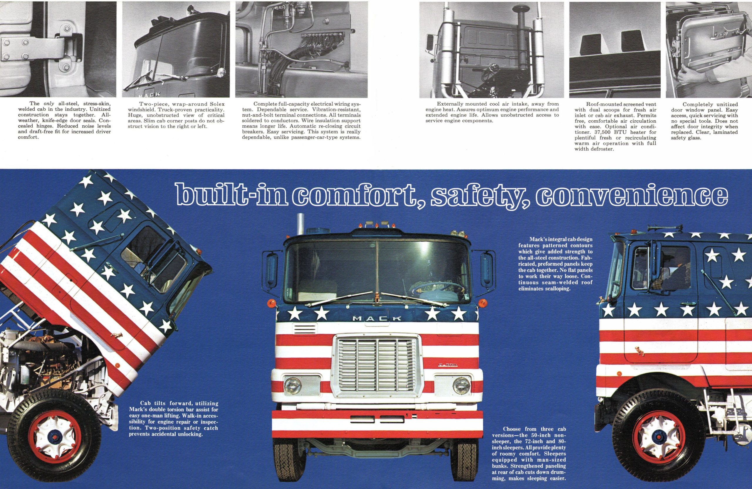 Tan pronto como en la década de los 50 Mack empezó a producir tractoras pesadas con un nuevo diseño de cabina. Era más compacto pero capaz de ofrecer el mismo confort al conductor, sleeper incluido. Habían nacido los camiones Cab Over the Engine. Es decir con las cabinas situadas sobre el espacio del motor. Los Mack Model H61 serían aquellos primeros camiones en marcar un estilo distinto.