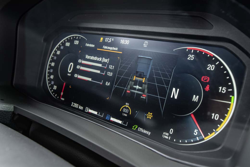 A bordo del MAN TGS 35.470 8X4 descubrimos algunas aplicaciones de la electrónica novedosas. No en vano ya hemos visto en algunos artículos la capacidad de innovación de MAN a lo largo de la historia ha sido muy destacada.