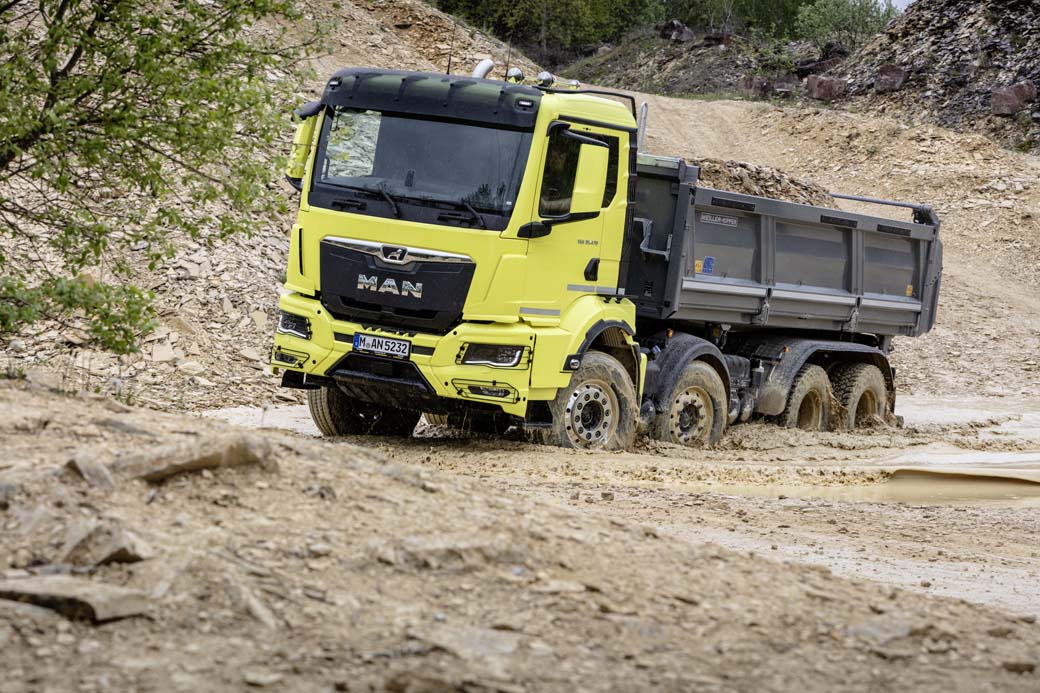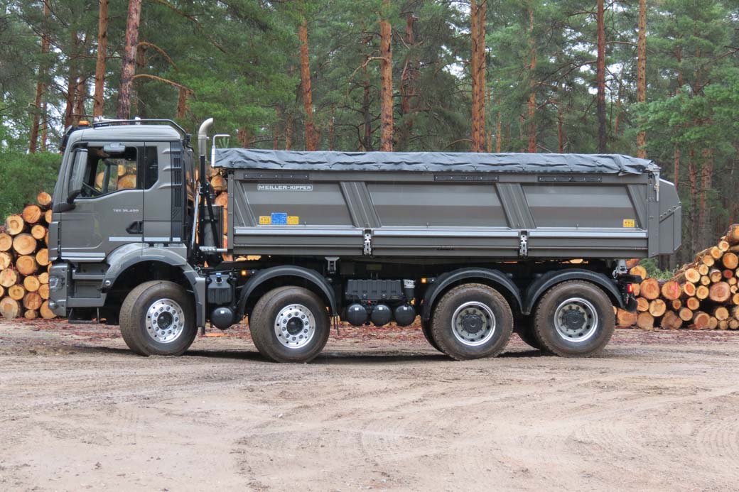A priori poco de que sorprendernos. Un camión volquete, con la caja Meiller de descarga trilateral tan habitual en mercados como el alemán. El motor bien conocido D 26 de la serie Euro 6d en el segmento de los 12 litros con una potencia media. Este camión trata de ser capaz de acometer trabajos en terreno muy complicado pero mantener una baja tara.