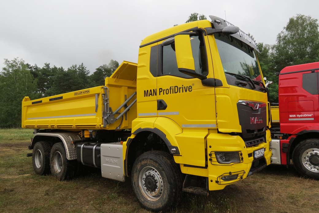 Con el beneplácito de nuestro experto Profidrive, pasamos al volante de un dúmper de cuatro ejes. Se trata del MAN TGS 8X4 35.470. Es decir un camión rígido de cuatro ejes con tracción en el doble carro trasero y 470 CV potencia máxima.