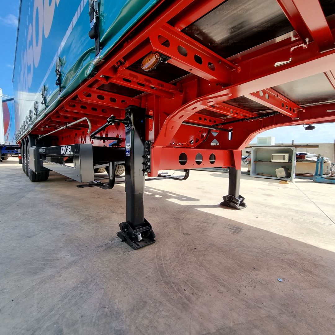 El modelo que aquí os mostramos cuenta con las mismas propiedades, pero además su chasis con perfiles perforados es capaz de rebajar casi en mil kilogramos la tara en vacío del semi en su versión convencional. Por lo tanto Kögel es capaz de ofrecer un semirremolque de lonas correderas que incluso en su versión más pesada con cuña central, la Kögel Light Plus Coil es capaz de ofrecer para un conjunto articulado convencional de 5 ejes y 40 T de MMA una carga útil de 27 Toneladas. Según nos cuenta Javier del Mazo la plataforma de lonas correderas, popularmente conocida como Tautliner, es el producto estrella de la marca: