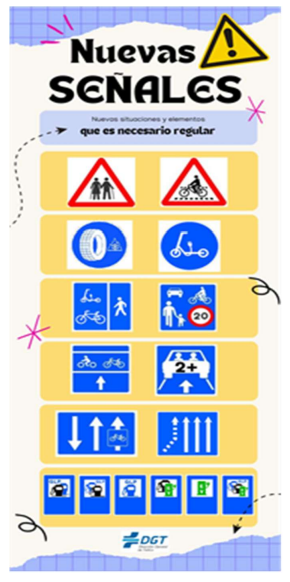 El Gobierno ha aprobado la actualización del catálogo oficial de señales de tráfico, vigente desde 2003. Por lo cual, se adapta a los cambios sociales, tecnológicos y de movilidad. Nuevas señales de la DGT