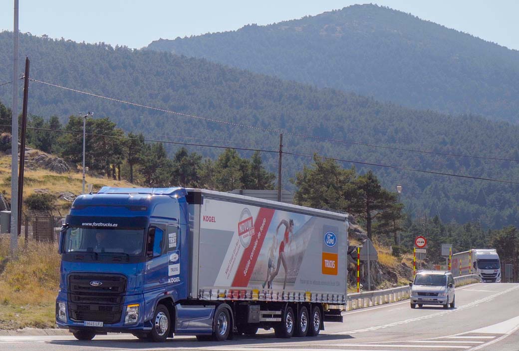Cuando calificamos al F-MAX de Ford Trucks como un camión prestacional, queremos decir que, sobretodo en el tramo 1, podemos comparar sus resultados a otra prueba como la del Scania R 540. Ya veis el sueco con más potencia y mayor par motor máximo, pero marcaba un registro casi calcado en nuestro Tramo 1. Si bien justo es reconocer al Sueco de Scania que se impuso al F-MAX tanto en el tramo 2, mixto entre autovía y ruta nacional, como en el 3 de montaña extrema. Volviendo a analizar en detalle ambas pruebas, vemos como el Scania R 540 sufrió algo de viento en el primer tramo, de modo que perdió, por así decirlo, la ventaja que le concede un semiremolque furgón con carenados laterales integrales, frente a la tautliner de serie del Kögel enganchado a este F-MAX. Sin embargo el funcionamiento más ahorrativo en montaña del Scania, acompañado de una menor velocidad media pese a las buenas prestaciones de su motor, se debió en buena medida a un tráfico que nos hizo rodar a una velocidad media mucho menor. Pero el hecho está ahí, de nuevo nos encontramos comparando con cifras muy parejas en cuanto a consumos y velocidades medias a este camión Ford de 500 Cv con otro de potencia superior.