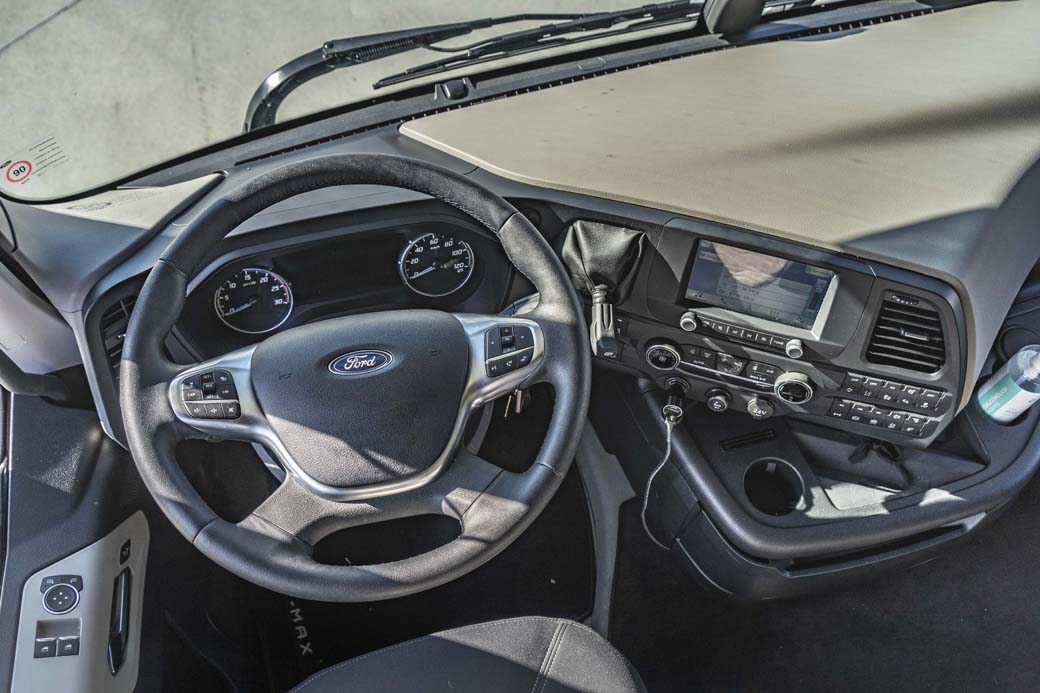 Justo es señalar, los más observadores ya lo habréis notado, un aspecto que de momento nos hizo renunciar a la política de mantener al cien por cien el sistema de control de la velocidad activado. En este caso Ford Trucks lo denomina MaxCruise. Sucede que a lo largo de los primeros meses activa en España, la marca ha extendido su red, ya cuenta con más de una quincena de concesionarios, a la vez que ha iniciado la venta de vehículos. Sin embargo todavía hay pocas unidades circulando en manos de transportistas, suponemos que en el momento de realizar nuestra prueba en torno a la centena de camiones Ford Trucks circulando en España. El sistema de Control de velocidad Predictivo, que recibe información acerca de la ruta mediante GPS y la cartografía registrada, trabaja de modo más eficaz y exacto a medida que se almacenan en una nube informática los datos que suben los F-MAX con dicho sistema activo. Simplemente sucede que todavía son pocos los kilómetros recorridos por dicha flota de F-MAX en nuestro país y por tanto a lo largo de los primeros meses puede suceder que en carreteras secundarias el MaxCruise entre en modo lectura de datos ocasionalmente. A nosotros nos sucedió un par de veces y por ello en esta ocasión cancelamos puntualmente el control de crucero. Principalmente cuando nos parecía que siguiendo en automático si no acelerábamos entraría fácilmente en acción el sistema ROL, dejar el camión en N para aprovechar la inercia. Efectivamente, actuando así cuando notamos que el simbolito de unas flechas desaparece del cuadro y que por tanto el MaxCruise no trabaja a tope, mejoramos el consumo. Esto es algo que a un transportista sólo le sucederá cuando su F-MAX sea la primera unidad del modelo en recorrer una ruta y por tanto debería ser algo que en pocas semanas o meses de uso normal deje de preocuparnos. Poco a poco dicha situación deberá convertirse en una anécdota cada vez menos frecuente.