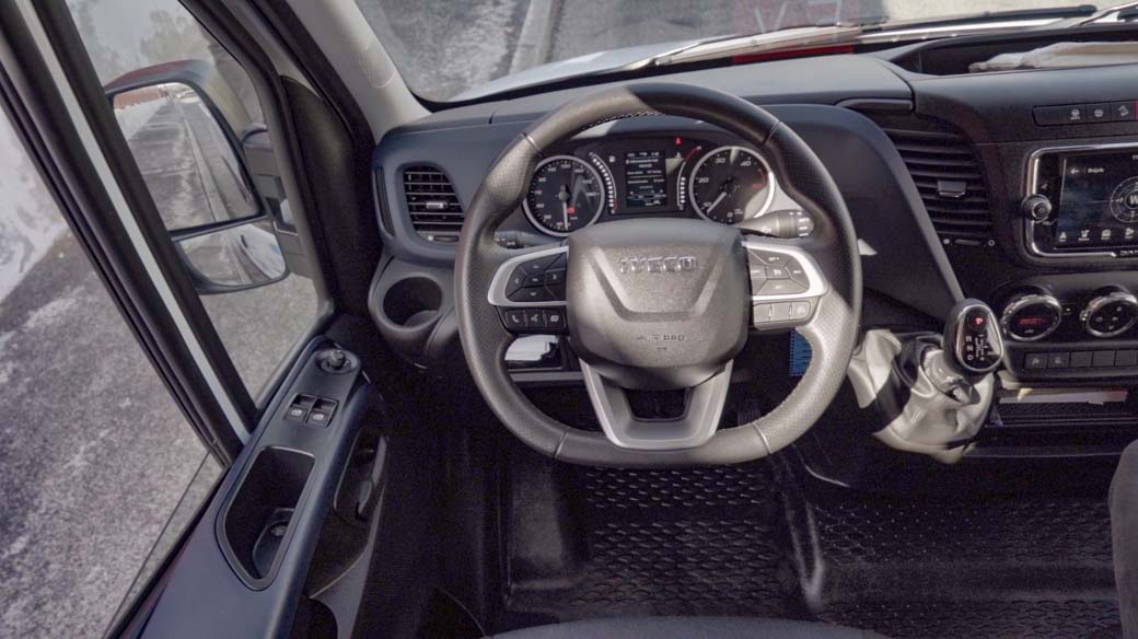 Sentados al volante, si recordamos la prueba de la anterior generación del furgón Daily con motor Natural Power, nos agrada la evolución del puesto de conducción. El volante multifunción ahora reúne más mandos. Se ordenan de modo que en el lado derecho tenemos los mandos de control de crucero y en el izquierdo los de la telefonía, sistema audio y menús del completo ordenador de a bordo. En cuanto al comportamiento del vehículo, a poco que nos acostumbremos a las opciones que nos permite el cambio Himatic veremos como podemos elegir entre buenas prestaciones o bien optimizar el ahorro en el modo ECO. También nos permite circular en modo manual, osea que ninguna queja a esta soberbia caja de cambios.