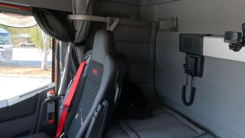 • Renault Trucks en esta unidad de pruebas, incluso sacrificando algo sus prestaciones en cuanto a consumos, ha equipado a tope este tractora. Cuenta por tanto con un excelente aspecto que se completa con un gran nivel de equipamiento interior. La cabina de piso llano ofrece un buen nivel de confort, tanto pensando en el descanso como en la conducción. Pese a no ser de las más amplias de este sector de camiones pensados para la gran ruta su equipamiento la hace muy confortable y supera en parte dicha limitación de espacio.