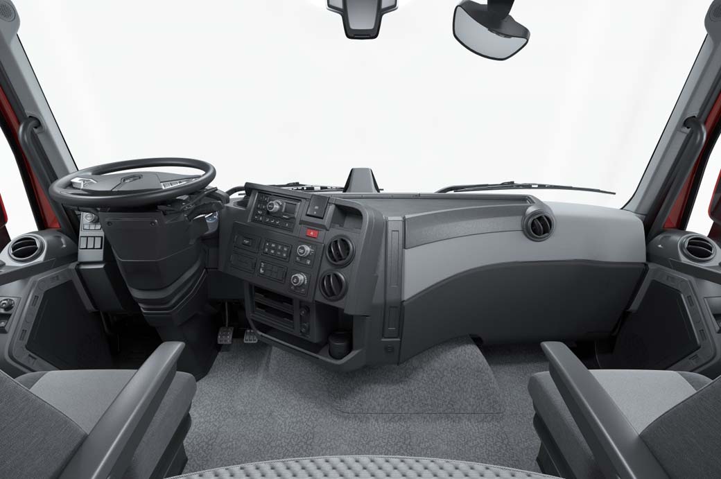- La aerodinámica exterior delantera de las cabinas se ha mejorado para obtener mayor eficiencia en el consumo de combustible.