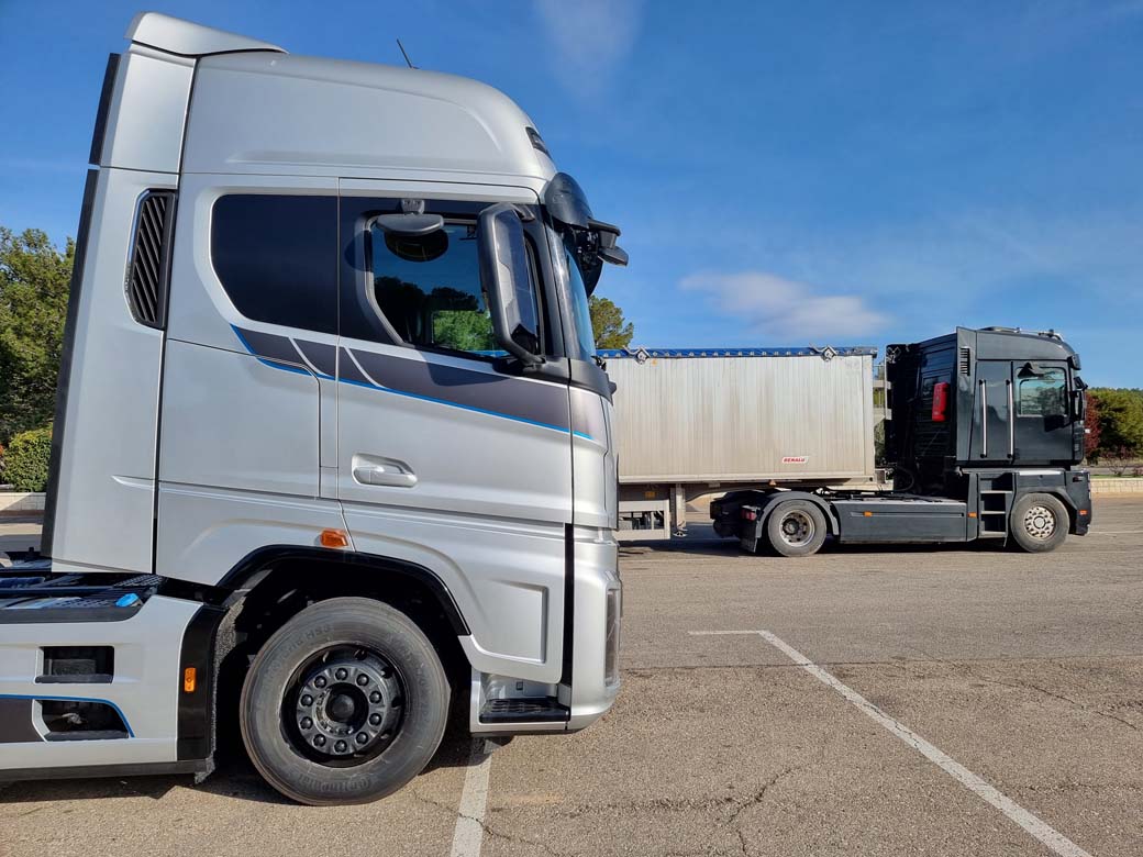 Incluso antes de las subidas notamos como a veces el sistema Max Cruise prefiere reducir una velocidad para aumentar el empuje antes de la rampa. En definitiva notamos como el camión varía su personalidad y prestaciones con los mandos. No podemos más que sentir impaciencia por finalizar las sesiones de fotos que tenemos en agenda para acudir lo antes posible a por el semi frigorífico que vamos a estrenar. Después será necesario conseguir el lastre para totalizar un peso del conjunto próximo a 40 toneladas. Y no quedará más que: ¡¡¡Carretera y Manta!!! Eso lo veremos encamionaut@s en el próximo episodio de esta narración…