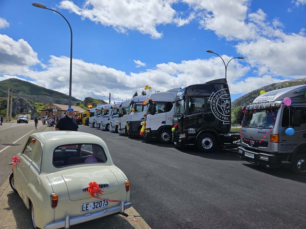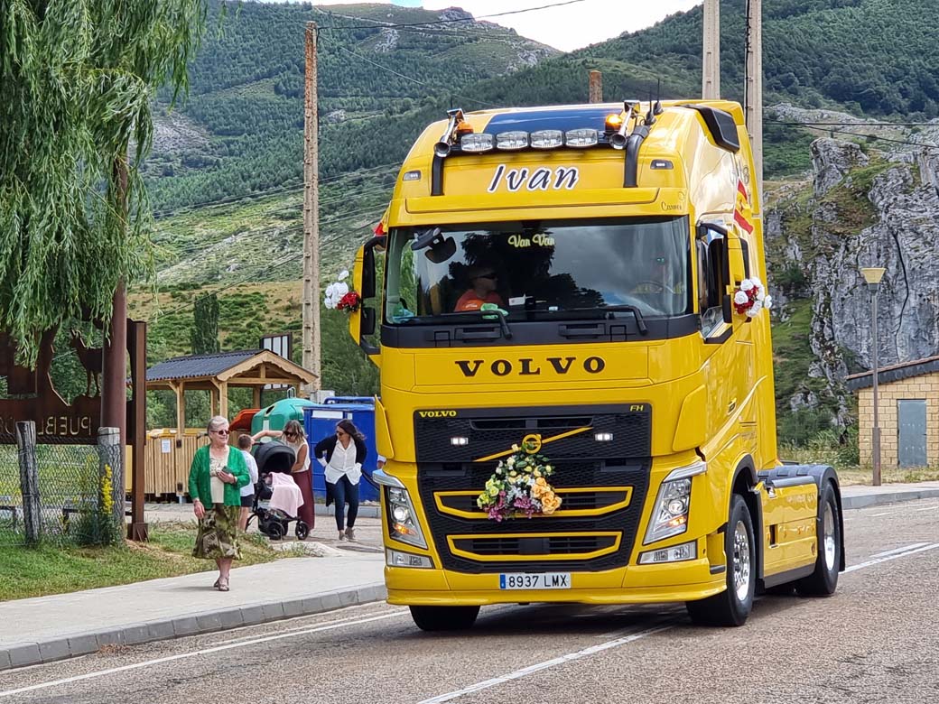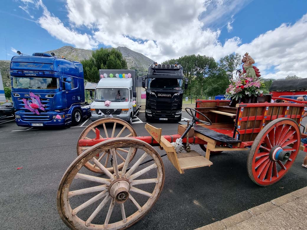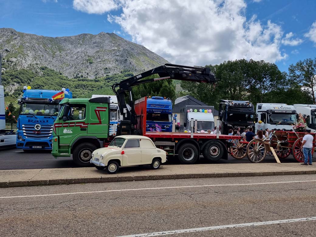 San Cristóbal concentración de camiones en Puebla de Lillo. Durante las primeras semanas de Julio los transportistas se reúnen para celebrar su Patrón.