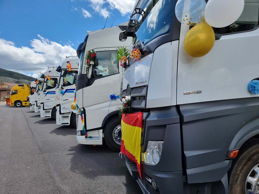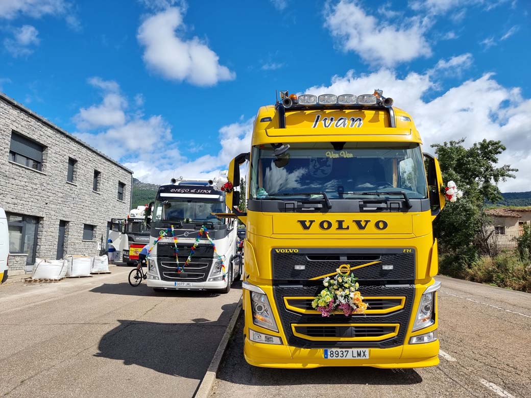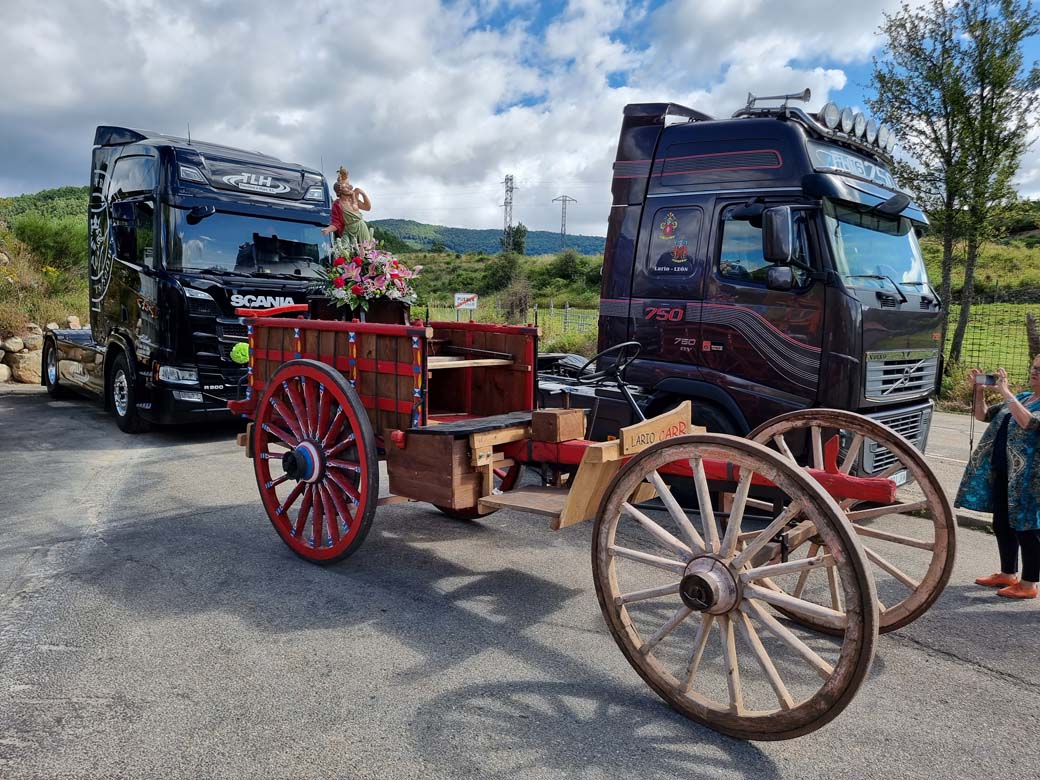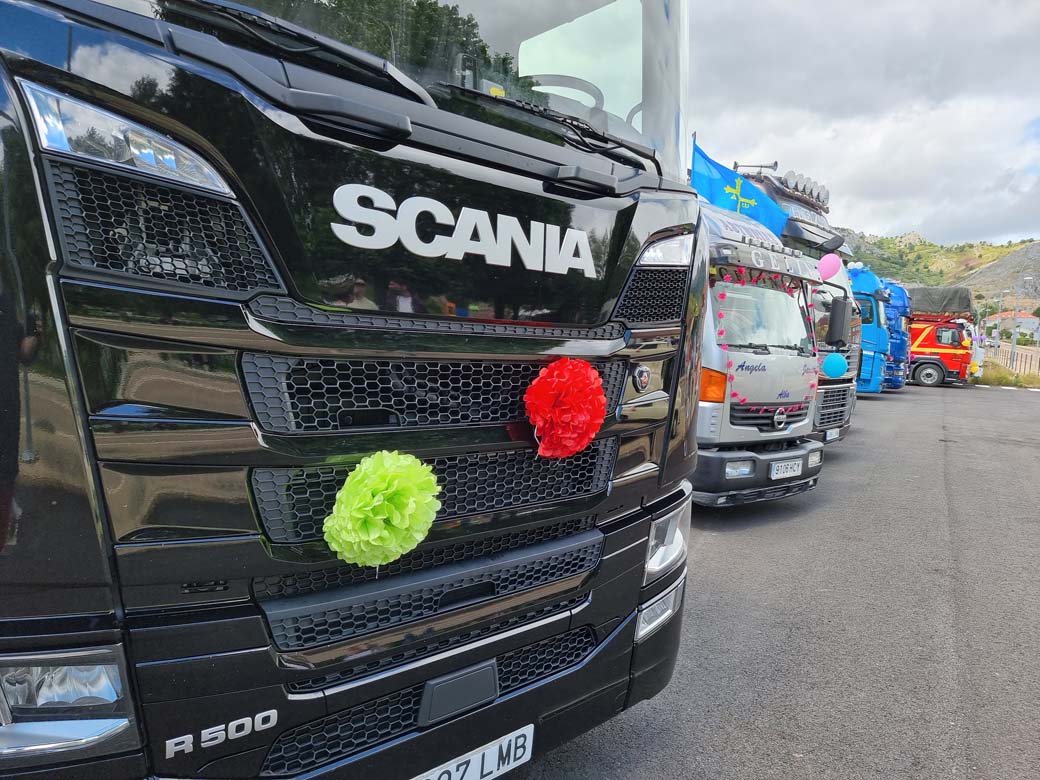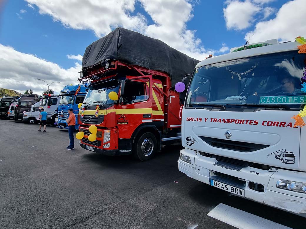 San Cristóbal concentración de camiones en Puebla de Lillo. Durante las primeras semanas de Julio los transportistas se reúnen para celebrar su Patrón.