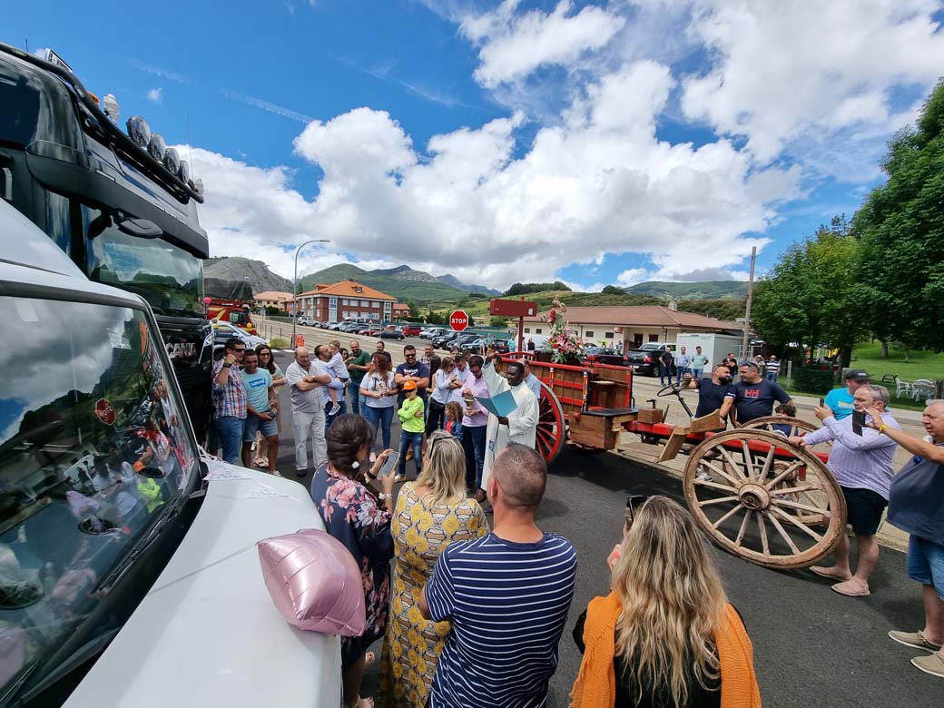 Naturalmente, además de una animada comida en común con animadísimo pasacalle camionero previo, la jornada no podía transcurrir sin la bendición y misa para desear lo mejor a los transportistas y sus familias.