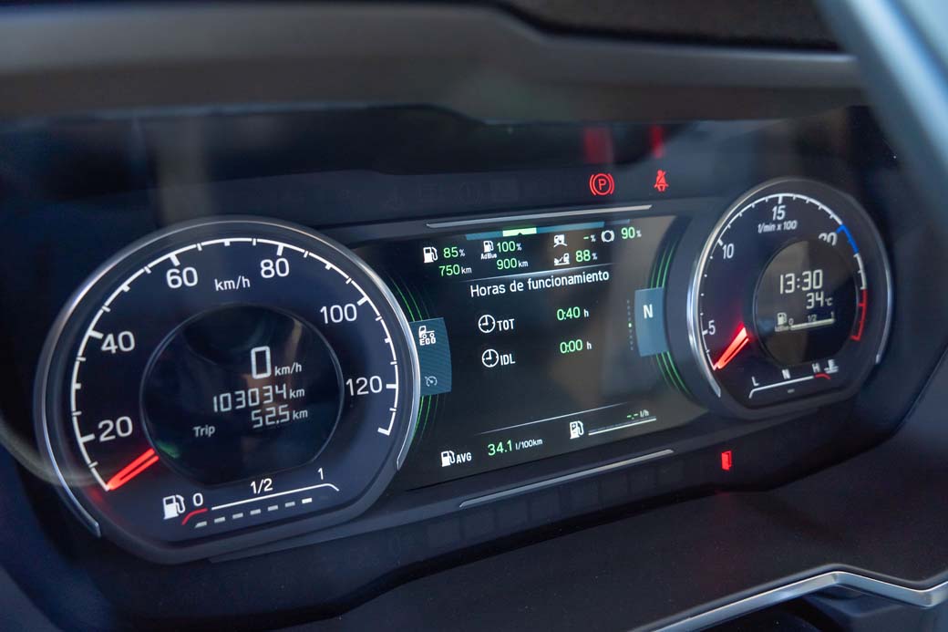 A lo largo de los 209,7 km totales de la prueba se han gastado 6,5 lts de Adblue, de modo que el consumo de este aditivo a añadir al del gasóleo fue de 3,1 lts Adblue/100 kms durante nuestra jornada de prueba.